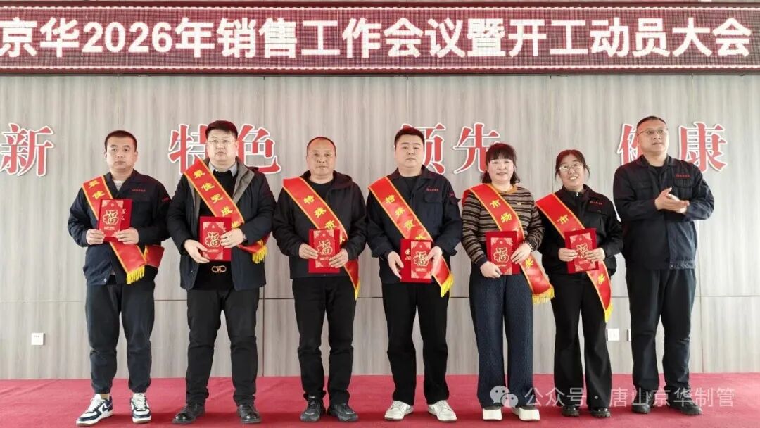 3月1日,唐山京华2026年销售工作会议暨开工动员大会在五楼会议厅召开,会议总结了2025年度销售工作,部署了2026年销售经营方向及目标任务。总经理温朝江、供销副总胡武、销售部长吴红涛、销售部内勤及驻外业务经理参会。